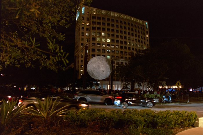 I took some film photos of it, and it was amazing. The sight was like augmented reality, but it was there in from of me, not on a screen. A self-suspended sphere, suspended by cables, with a light inside projecting outward, and the surface of the moon printed on the outside. Although I could discern the lines that made it up, it was still impressive to see.