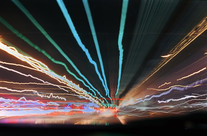 Purple streetlight light trails on Kodak Vision3 5207 film.