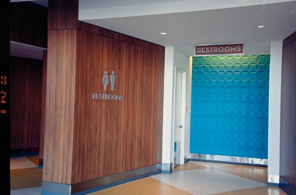 Cabana Bay restrooms sign in Orlando Florida. Photographed on Kodak Ektar 100 with the Nikon F80s film camera.