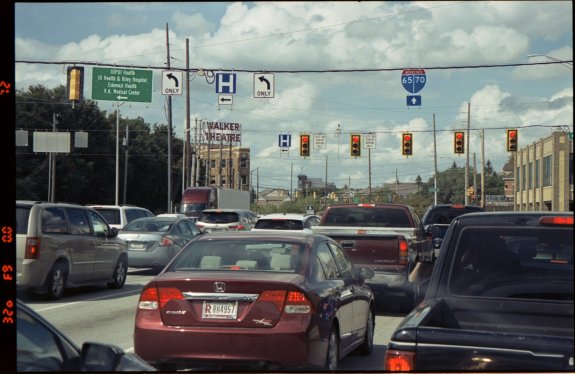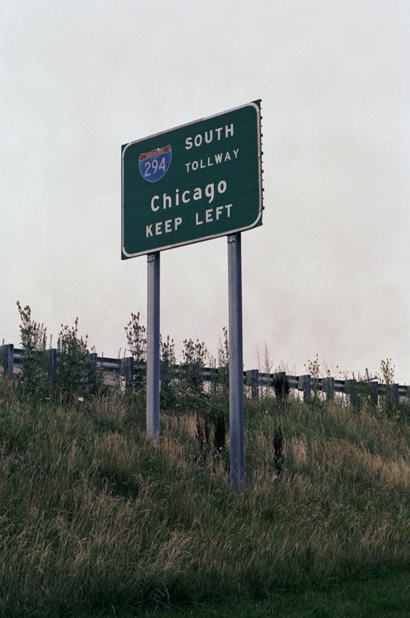 I294 South Tollway sign. Chicago Keep Left - Fujifilm Superia 400.