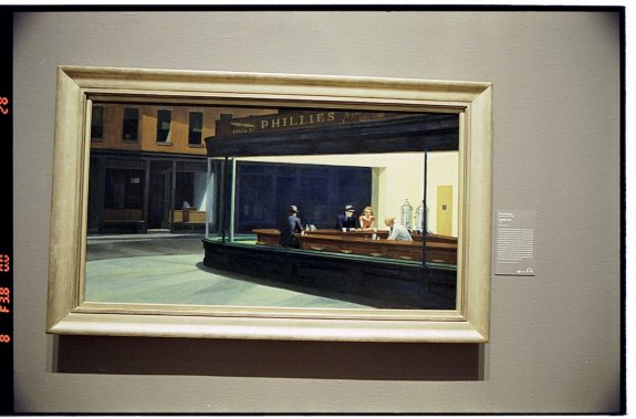 Edward Hopper's Nighthawks painting photographed on Kodak Portra 400 film.