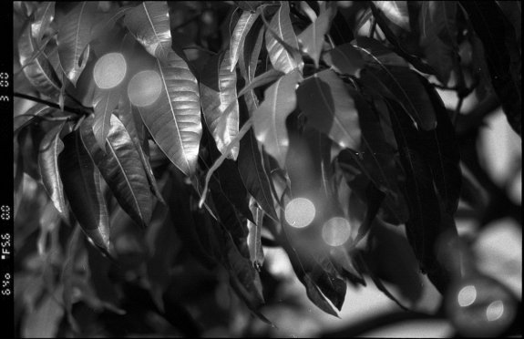 Bokeh balls on Kentmere Pan 400 made with the Nikkor 70-300mm 1:4-5.6 ED Autofocus Lens. Nikon F6.