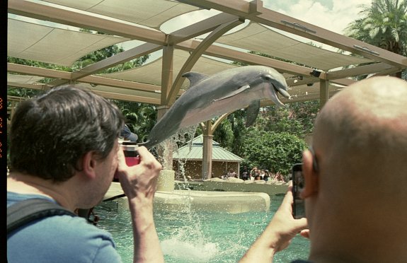 Zone focus helped me get this photo. Dolphin in the air. FujiFilm Superia X-tra 400 film. Nikon F80