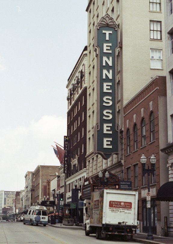 Marquee sign of the Tennessee Theatre in Knoxville, Tennessee. Photographed on Kodak Portra 400 film.