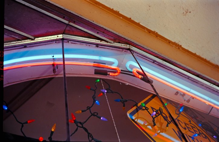 Font and back side of the Orlando Watch Company Neon sign. Shot on the Nikon F80s with the 35mm f/2 D lens on Kodak Ektar 100 film. Winter park Florida.