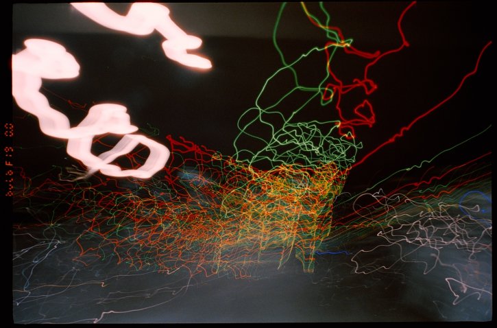 Light double exposure looks like flying in space. Kodak Vision3 250D.